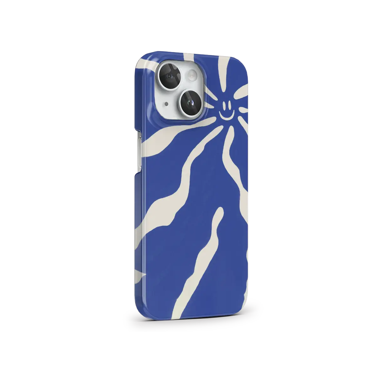 Blue Smile is zo’n ontwerp dat gewoon logisch is: rustige blauwe lijnen op een zachte gebroken witte basis, vloeiend alsof ze nergens heen hoeven. Geïnspireerd door de relaxte stijl van Matisse, voegt dit hoesje een beetje persoonlijkheid toe zonder om aandacht te schreeuwen. En die kleine smiley in de bovenhoek? Die doet waar hij het beste in is: gewoon chillen.