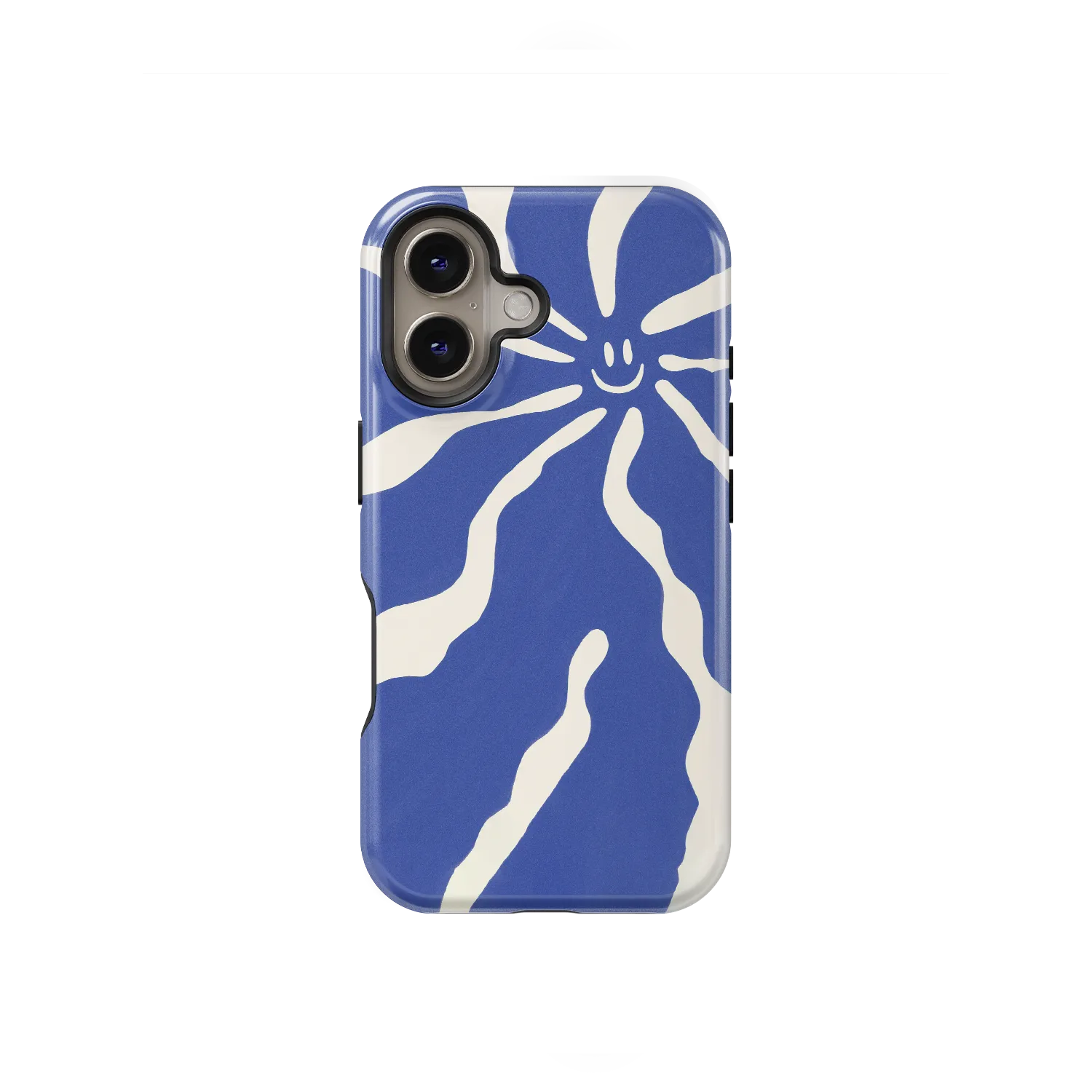Dit door Matisse geïnspireerde iPhone 16-hoesje geeft een speelse draai aan klassieke lijnkunst. Vloeiende blauwe lijnen dansen over een zachte gebroken witte achtergrond – vrij, abstract en vol beweging. In de bovenhoek houdt een vrolijke smiley het geheel luchtig. Het is minimalistisch, maar verre van saai.