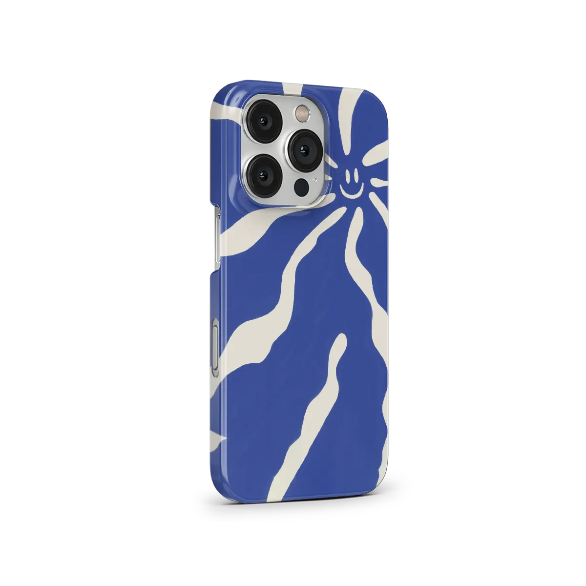 Het Blue Drift-hoesje geeft je telefoon een vriendelijke gloed. Het heeft vloeiende blauwe lijnen op een warme gebroken witte achtergrond, afgewerkt met een kleine smiley in de hoek. Het ontwerp is minimalistisch maar opvallend, waardoor je telefoon een frisse uitstraling krijgt zonder schreeuwerig te zijn.