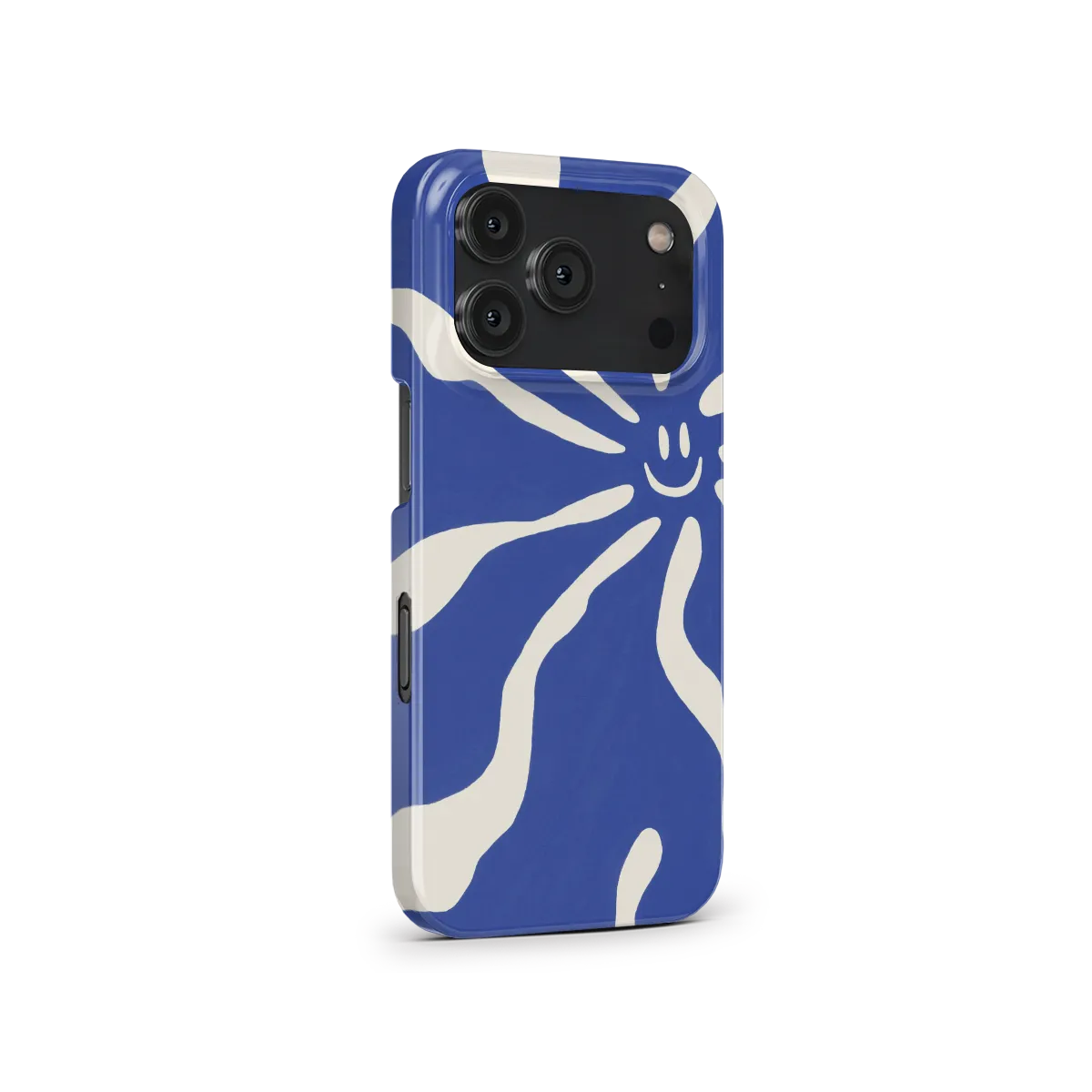 Krijg een coole nieuwe look met de Blue Drift Case – Blauwe strepen drijven over een warme gebroken witte achtergrond, afgewerkt met een kleine smiley in de hoek. Het is strak, modern en voelt persoonlijk aan zonder overdreven te zijn.