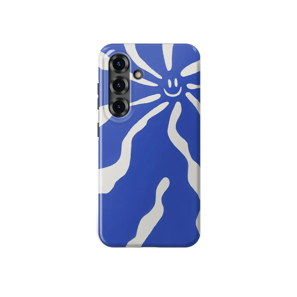 Bescherm je Galaxy A16 met het Blue Smile-hoesje. Blauwe lijnen lopen over een zachte gebroken witte achtergrond, afgewerkt met een kleine smiley in de hoek. Het is een strak ontwerp dat gemakkelijk mee te nemen is en waar je blij van wordt.