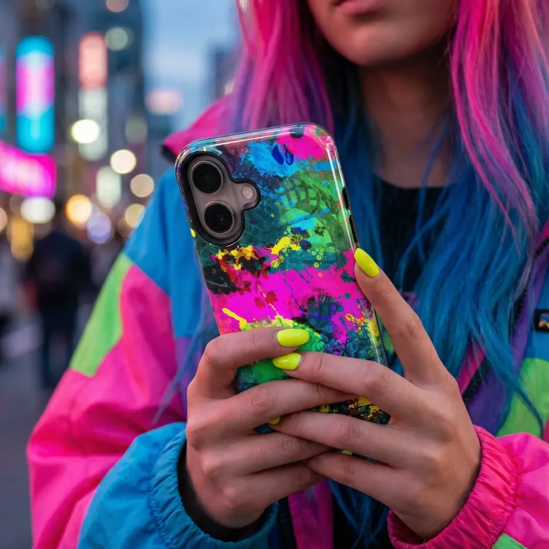 Je telefoon verdient een eigen persoonlijkheid, en het Abstract Color Splatter hoesje voor de Galaxy A56 levert die in overvloed. Spatten van neonroze, elektrisch blauw en zonnig geel knallen van het glanzende oppervlak af. Het resultaat? Een look die net zo opvallend en leuk is als jijzelf.