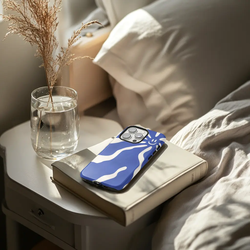 Je Galaxy A56 heeft een hoesje nodig dat zowel praktisch als mooi is. Daar komt Blue aSmile om de hoek kijken. Het ontwerp is simpel: rustige blauwe strepen over een zachte gebroken witte achtergrond, met een kleine smiley in de hoek. Het is relaxed, strak en past bij elke stijl.