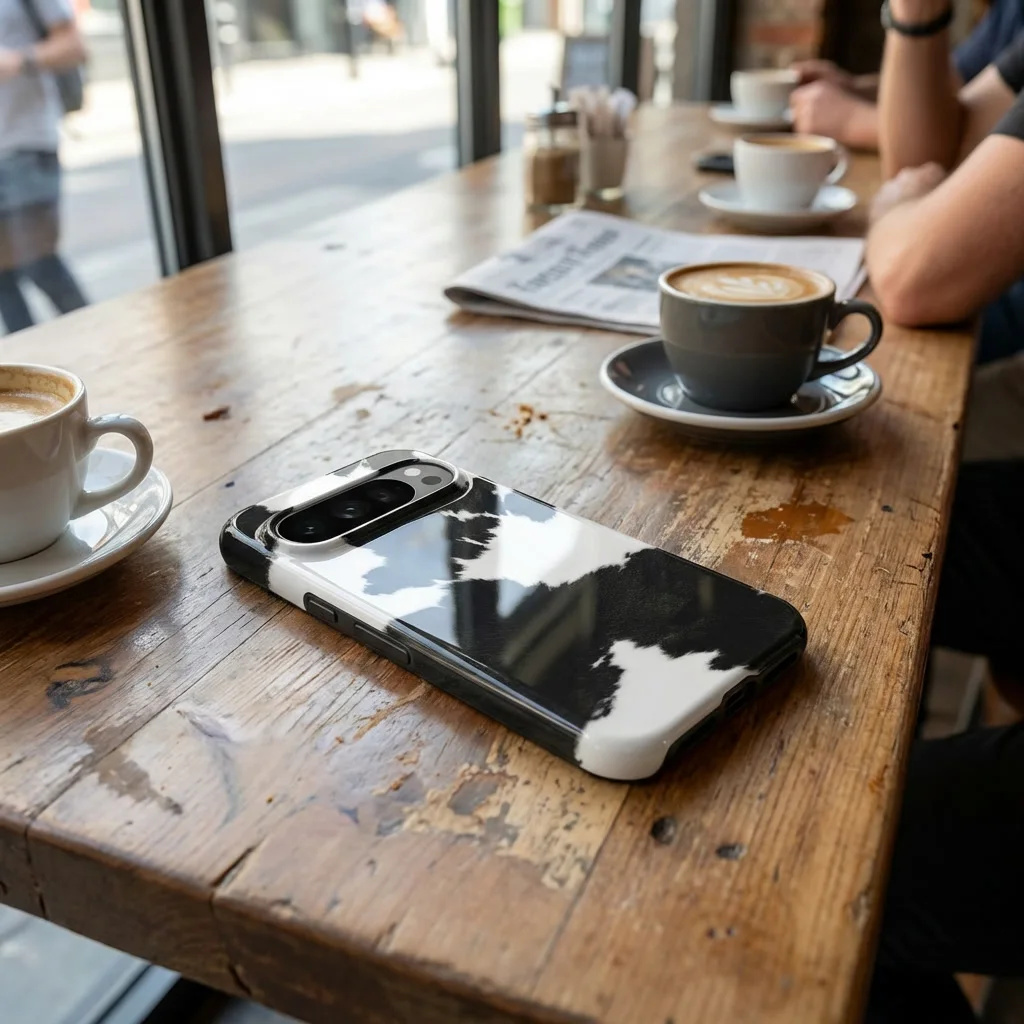 Monochroom, opnieuw uitgevonden. Het Urban Cowhide-hoesje voor de Samsung A56 laat de traditionele boerderij-vibe achterwege voor iets veel doelgerichters. We hebben de onregelmatige, organische vormen van een huidpatroon in balans gebracht met de strakke, moderne architectuur van de A56. Het resultaat? Een contrastrijke esthetiek die meer aanvoelt als een kunstwerk dan als een standaard telefoonhoesje.
