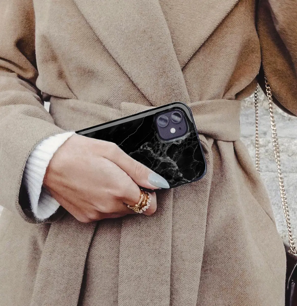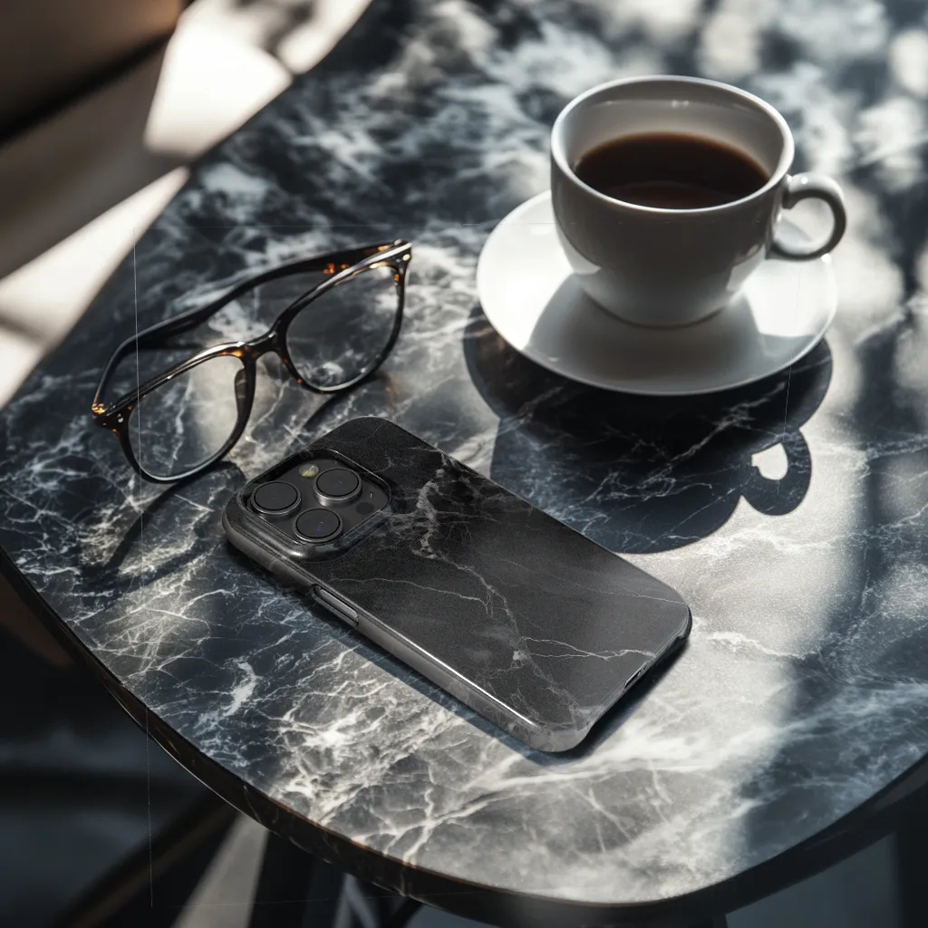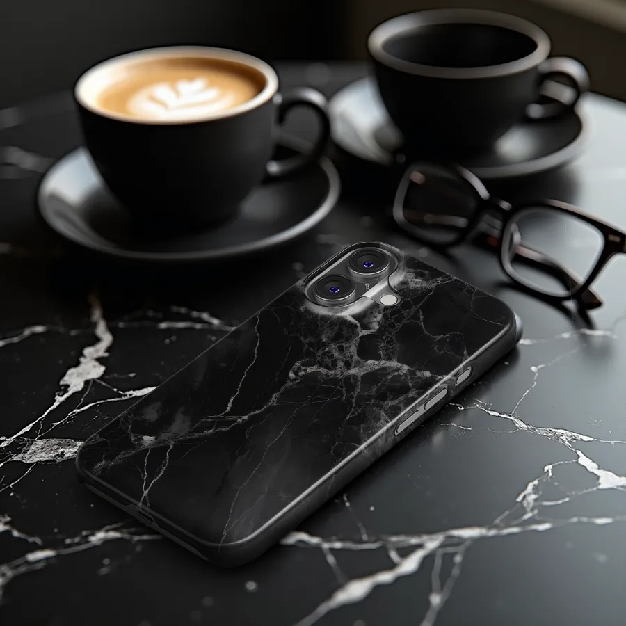 Deze hoes heeft een opvallende zwarte marmeren print die je telefoon laat opvallen zonder opzichtig te zijn. Hij is strak, modern en gemakkelijk te combineren met je stijl. Of je nu op je werk bent, met vrienden uitgaat of gewoon op de bank zit, hij staat perfect.