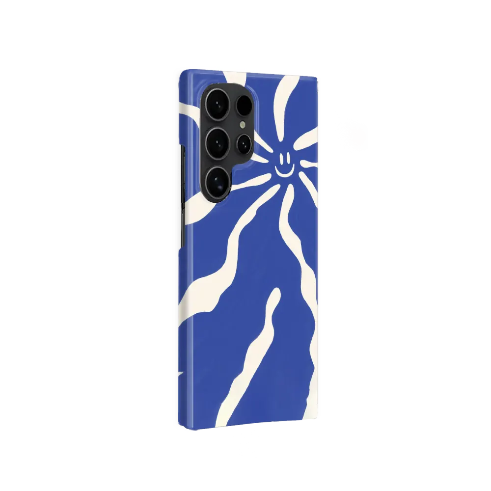 De Galaxy S25 Ultra valt niet bepaald op – en je hoesje ook niet. Blue Drift kiest voor een minimalistische aanpak: met de hand getekende blauwe lijnen op gebroken wit, met daarbovenop een subtiele smiley. Hij is kalm, zelfverzekerd en voelt net even anders dan de gebruikelijke zwart-op-zwart hoesjes.