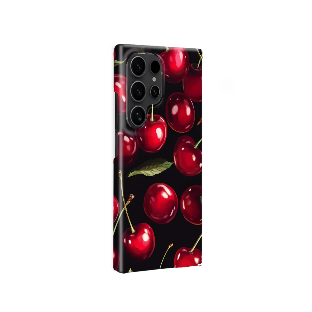 Je telefoon is al slim. Nu kan hij ook stijlvol zijn. De Dark Cherry Case voor de Samsung Galaxy S25 Plus brengt iets nieuws: opvallende rode kersenillustraties op een gladde, matzwarte achtergrond.
