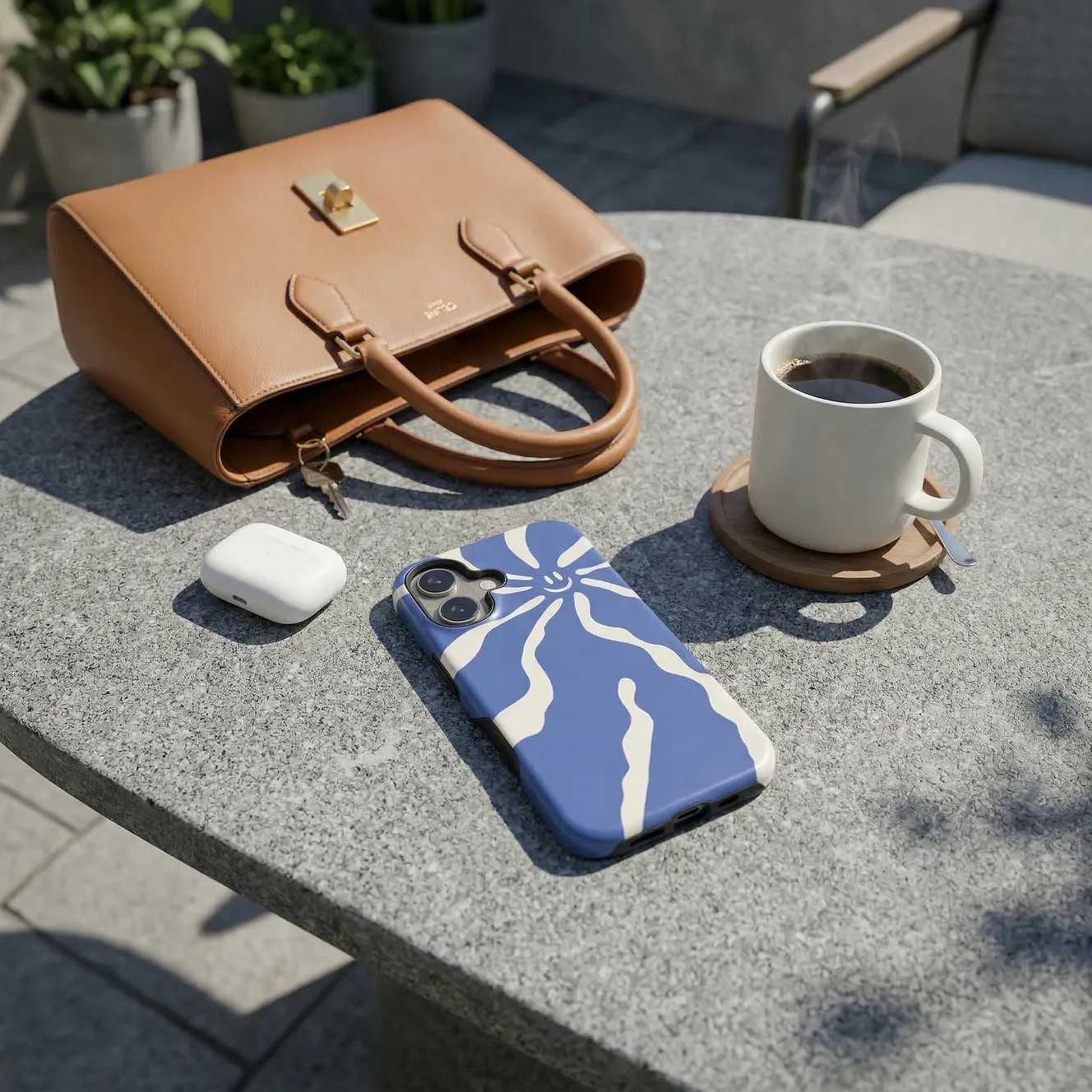 Het Blue Smile-hoesje voor de Galaxy S26 is ontworpen voor wie houdt van een moderne, kunstzinnige look zonder poespas. Denk aan diepblauwe, abstracte lijnen die als snelle penseelstreken over een zachte, gebroken witte achtergrond lopen. Het resultaat? Een fris design dat rust uitstraalt, maar door de subtiele smiley in de hoek ook een glimlach op je gezicht tovert.