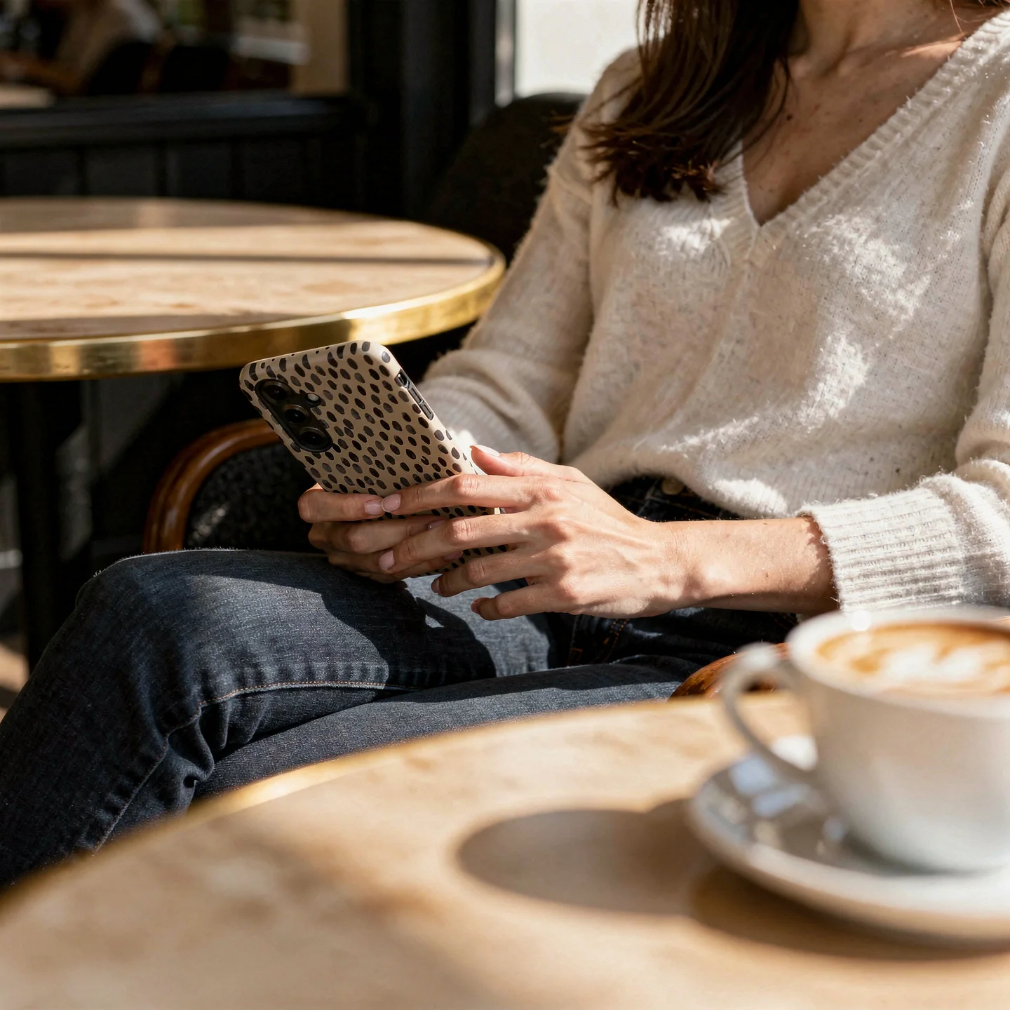 De Galaxy S26 is een prachtig toestel en dit hoesje zorgt ervoor dat hij dat blijft. Of je nu op je werk bent of een kop koffie drinkt in de stad, het Mocha Motif-ontwerp past naadloos bij elke gelegenheid en kledingstijl.